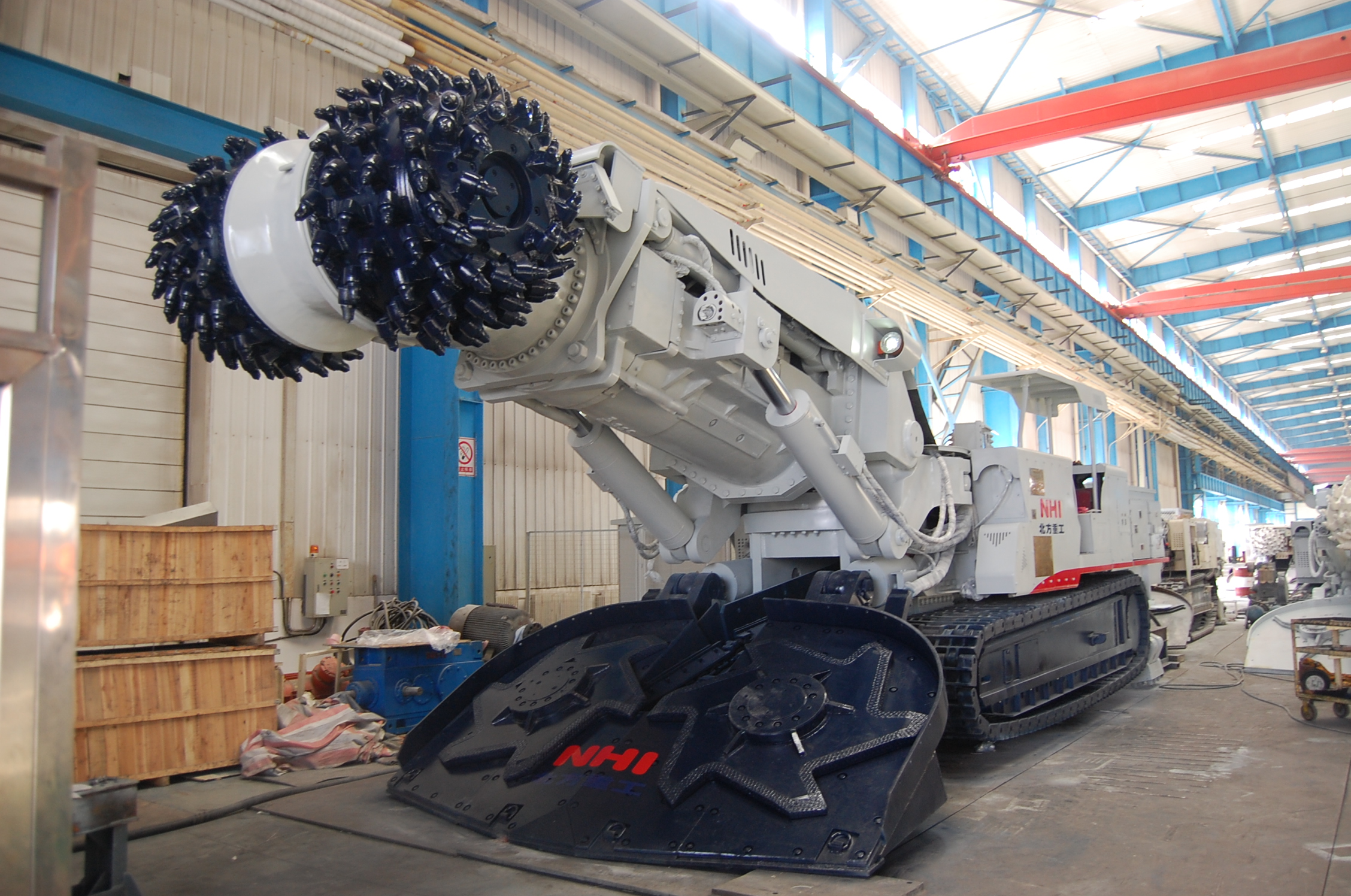 NHI is one of the earliest companies which design and product boring machine in China. NHI supply quality products to major domestic coal producers for many years. Now it has formed a series of boring machine such as EBZ120, EBZ132, EBZ160A, EBZ160A (short), EBZ200, EBZ220, EBZ240, EBZ260, EBZ320, EBH360. In 2012, NHI developed the EBH360 horizontal axis boring machine which is a breakthrough in the structural design and manufacture. It solves the problem of cutting transmission and achieves the conversion between two speeds. It also make it possible which hydraulic and electrical control in the hydraulic system at the same time. In the electrical system, it achieves remote control and profile cutting function. The technology is at a leading level in China.
